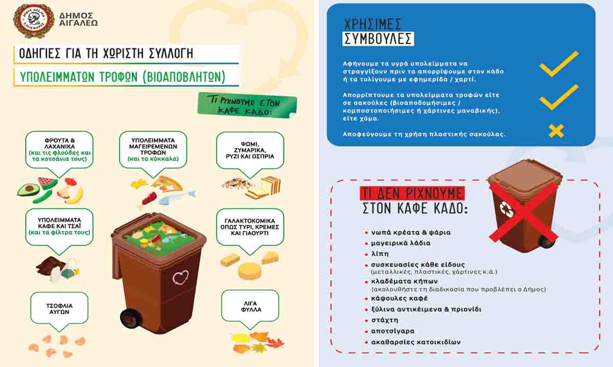 Τοποθετήθηκαν οι πρώτοι καφέ κάδοι στον Δήμο Αιγάλεω