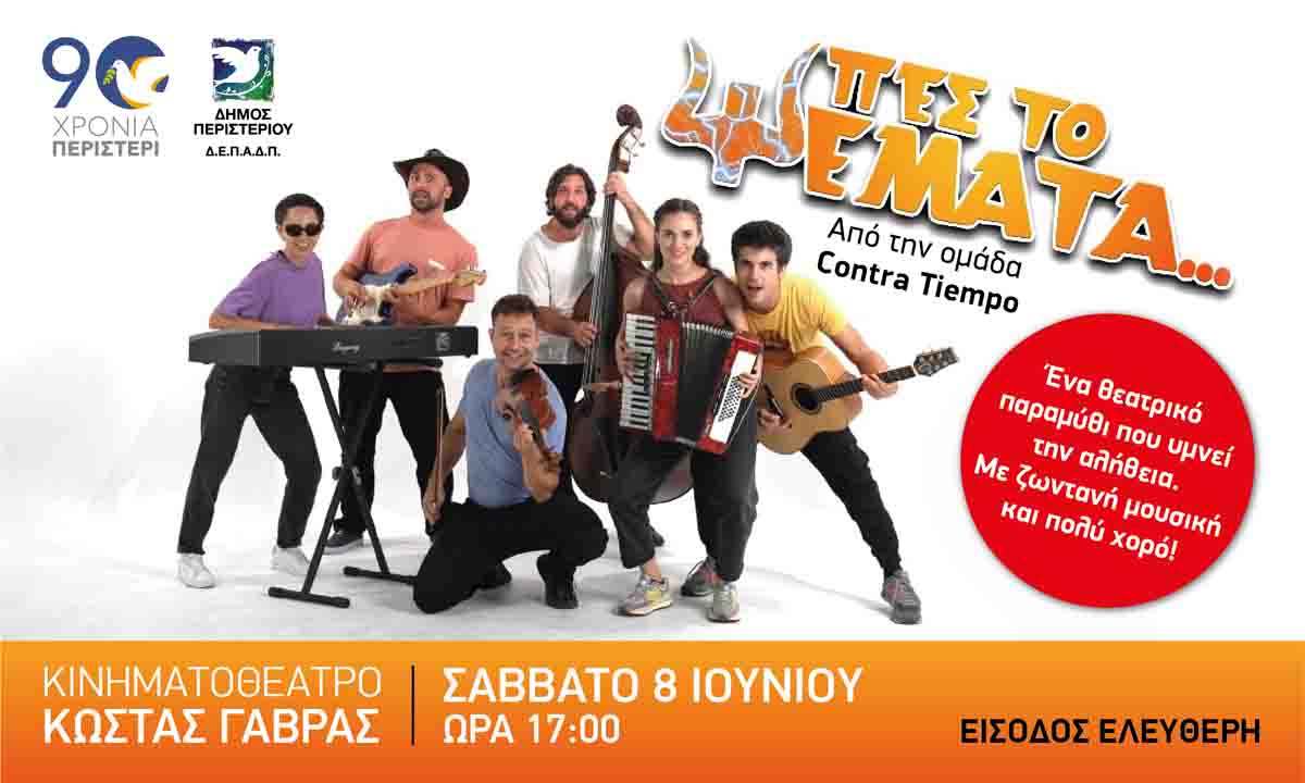 Ο Δήμος Περιστερίου με ανακοίνωσή του γνωστοποιεί ότι το Σάββατο 8 Ιουνίου 2024 και ώρα 17:00, στο Κινηματοθέατρο «Κώστας Γαβράς», θα πραγματοποιηθεί η θεατρική παράσταση “Πες το Ψέματα….” από την Ομάδα Contratiempo, (Βασιλικών 6, Κηπούπολη). Είσοδος Ελεύθερη! Θα τηρηθεί σειρά προτεραιότητας! Ένα ζωντανό μουσικοθεατρικό παραμύθι που υμνεί την αλήθεια! Μια παράσταση για παιδιά από 4 […]