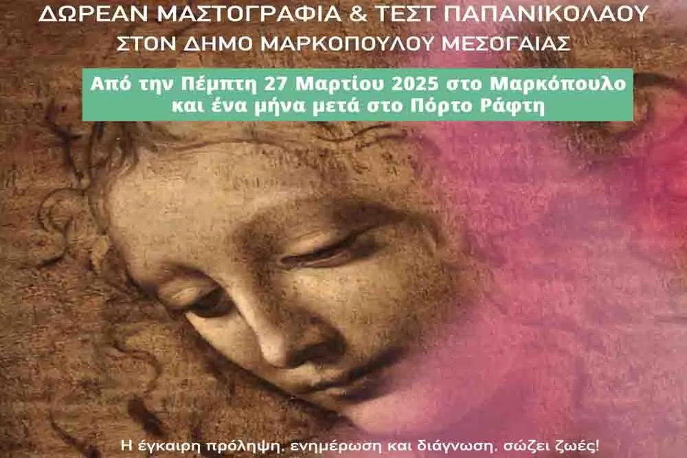 Δήμος Μαρκόπουλου Μεσογαίας: ΔΩΡΕΑΝ γυναικολογικές εξετάσεις -Μαστογραφία και Τεστ Παπανικολάου-, για όλες τις μόνιμες κατοίκους του
