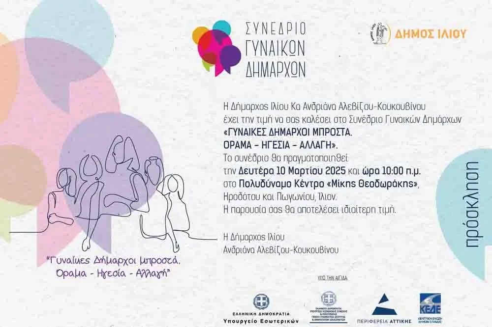 Συνέδριο Γυναικών Δημάρχων: «Γυναίκες Δήμαρχοι Μπροστά – Όραμα – Ηγεσία – Αλλαγή» Ίλιον, Δευτέρα 10 Μαρτίου 10πμ…