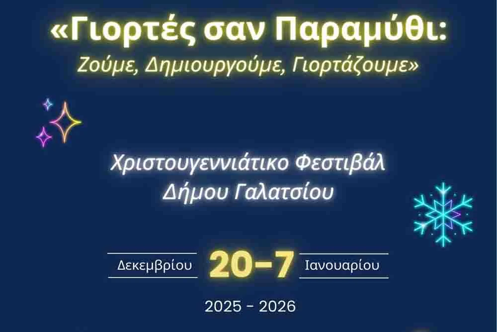 20 Δεκεμβρίου 2025 ξεκινάει το Χριστουγεννιάτικο Φεστιβάλ Δήμου Γαλατσίου 2025-2026