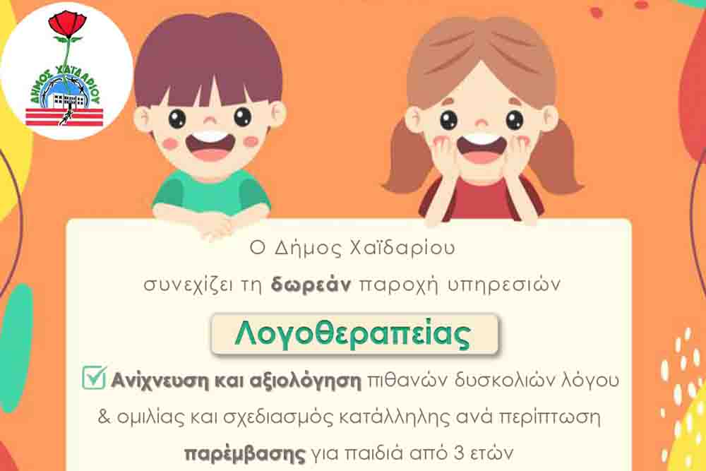 Δήμος Χαϊδαρίου, λογοθεραπεία, κοινωνική πολιτική, παιδί, προσχολική αγωγή, ειδική αγωγή, φωνολογική επίγνωση, γονείς, ΚΕΦΗ, αυτοδιοίκηση, πρόληψη, δημόσια υγεία, κοινωνικές υπηρεσίες, εκπαίδευση, Αττική