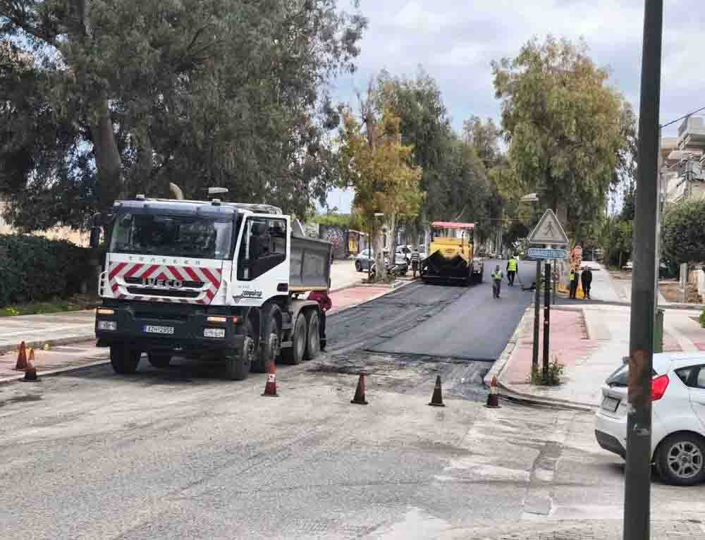 - ξεκινά η ασφαλτόστρωση της οδού Εθνικής Αντιστάσεως, με ήδη τοποθετημένη σήμανση
