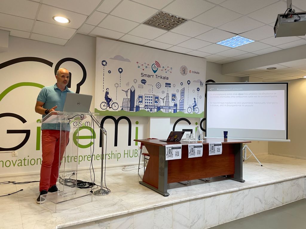 Η ενημερωτική συνάντηση πραγματοποιήθηκε στις 3 Ιουνίου, στον κόμβο Καινοτομίας & Επιχειρηματικότητας, GiSeMi HUB, της e-trikala. Στη συνάντηση ο Καθηγητής Φυσιολογίας στο ΤΕΦΑΑ του Πανεπιστημίου Θεσσαλίας, Δρ Ανδρέας Φλουρής, ενημέρωσε τους/τις παρευρισκόμενους/ες για τη σημασία της ποιότητας του αέρα στη σωματική και ψυχική υγεία.