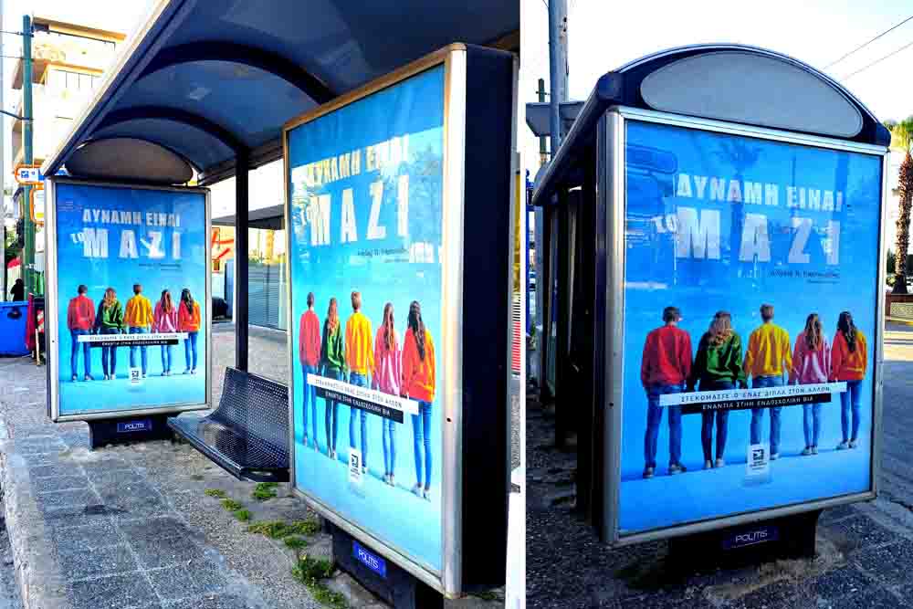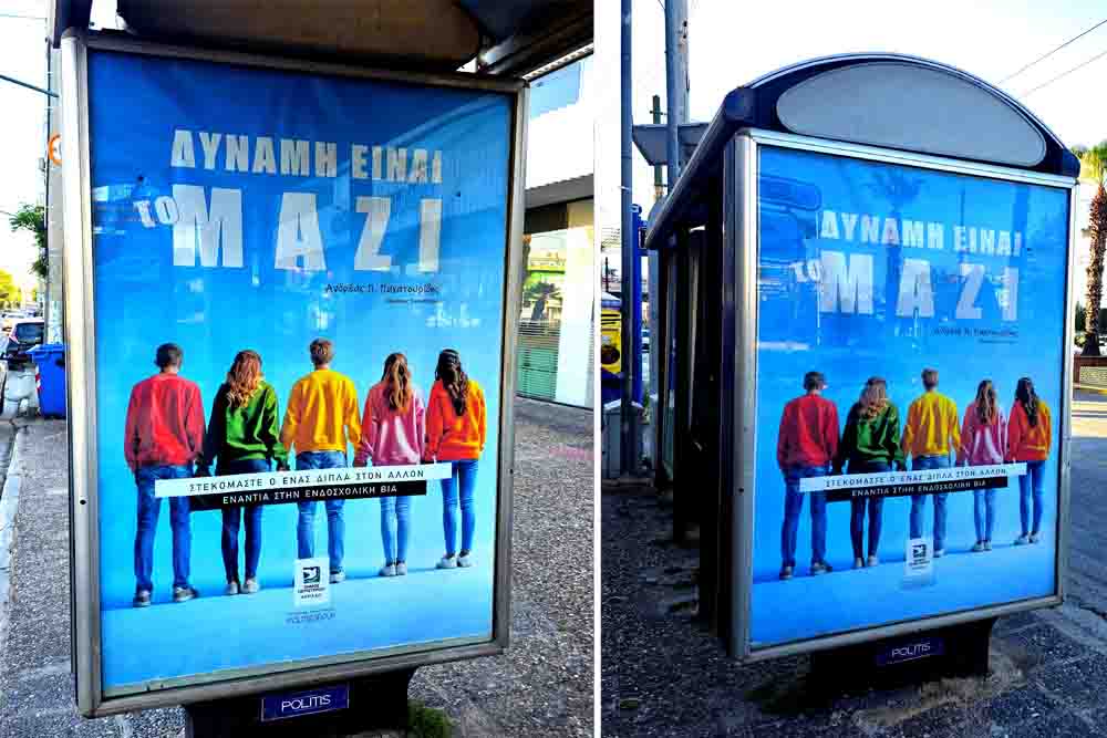 Η πρωτοβουλία, που υλοποιείται με τη στήριξη της ΔΕΠΑΔΠ και την υποστήριξη της Politis Group, φέρνει το μήνυμα κατά του bullying στις στάσεις λεωφορείων σε όλη την Αττική. Πρόκειται για μια επιλογή με σαφή επικοινωνιακή στόχευση: οι στάσεις αποτελούν χώρους καθημερινής συνάθροισης διαφορετικών ηλικιακών και κοινωνικών ομάδων, λειτουργώντας ως κόμβοι διάχυσης ιδεών και αξιών.