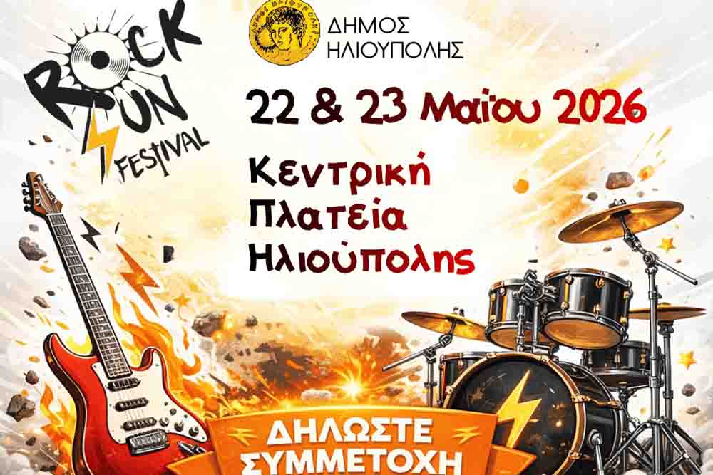 Ο Δήμος Ηλιούπολης προσκαλεί τα μαθητικά και νεανικά μουσικά σχήματα της πόλης μας να συμμετάσχουν στο RockSun Fest 2026, το οποίο θα πραγματοποιηθεί στις 22 και 23 Μαΐου στην Κεντρική Πλατεία της πόλης.